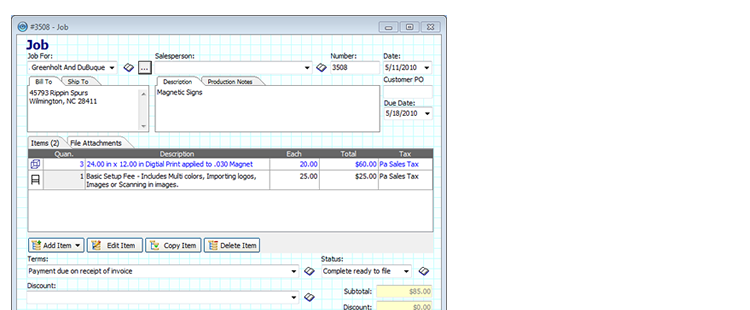 EstiMate also offers you customer and vendor relationship management, job tracking, production tools, work-in-progress reporting, job material lists, purchase orders, and much, much more.