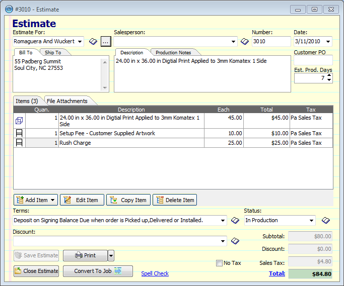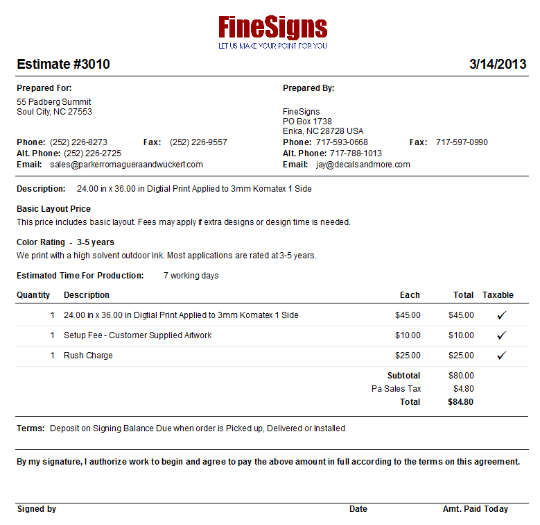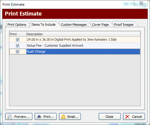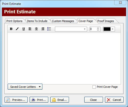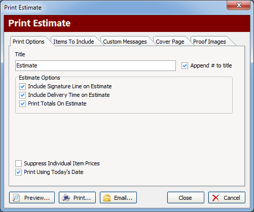 Print Estimates | Easily print, fax, or email PDF estimates to your customers. |