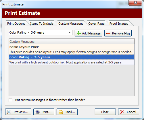 Custom Messages | Add custom messages to all your estimates ("remember to wipe behind those magnetics once a week!") |