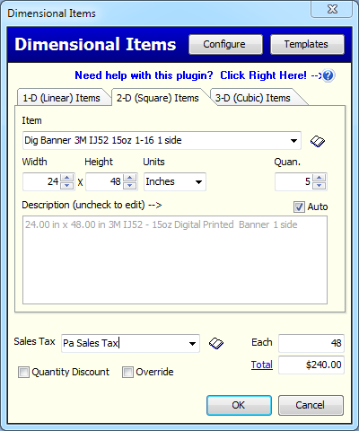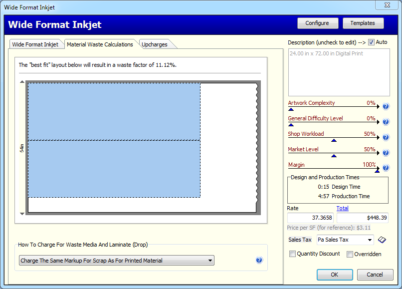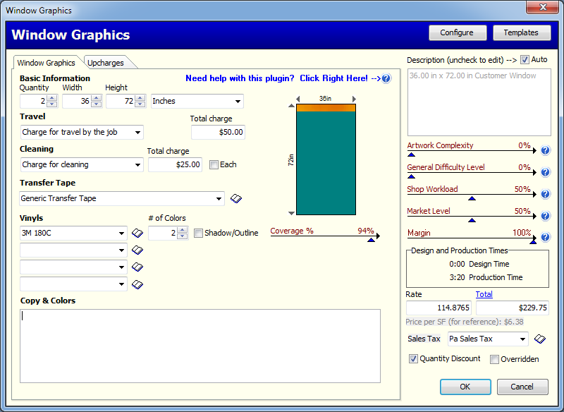 Upcharges | Use customizable upcharges on any of EstiMate's pricing screens. |