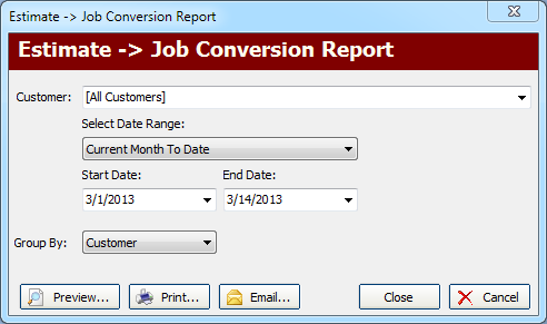 Conversion Report | See how well you have been converting estimates to jobs over time. |